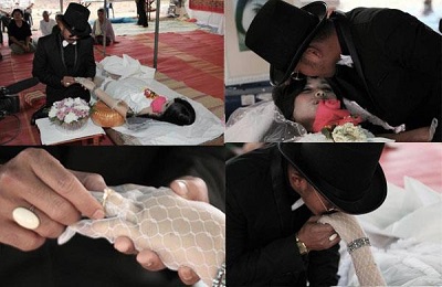 وبكل الحزن والحب، استمر الزوج في تنفيذ قرار إقامة حفل زفافه على عروسه القتيلة، وأقيم حفل الزفاف في قاعة لإعداد الجنائز فيتشانج سو، حيث حضر الحفل أفراد من عائلتي الزوجين، وتم تزيين العروس بفستان أبيض ووضعت في تابوت من الكريستال.